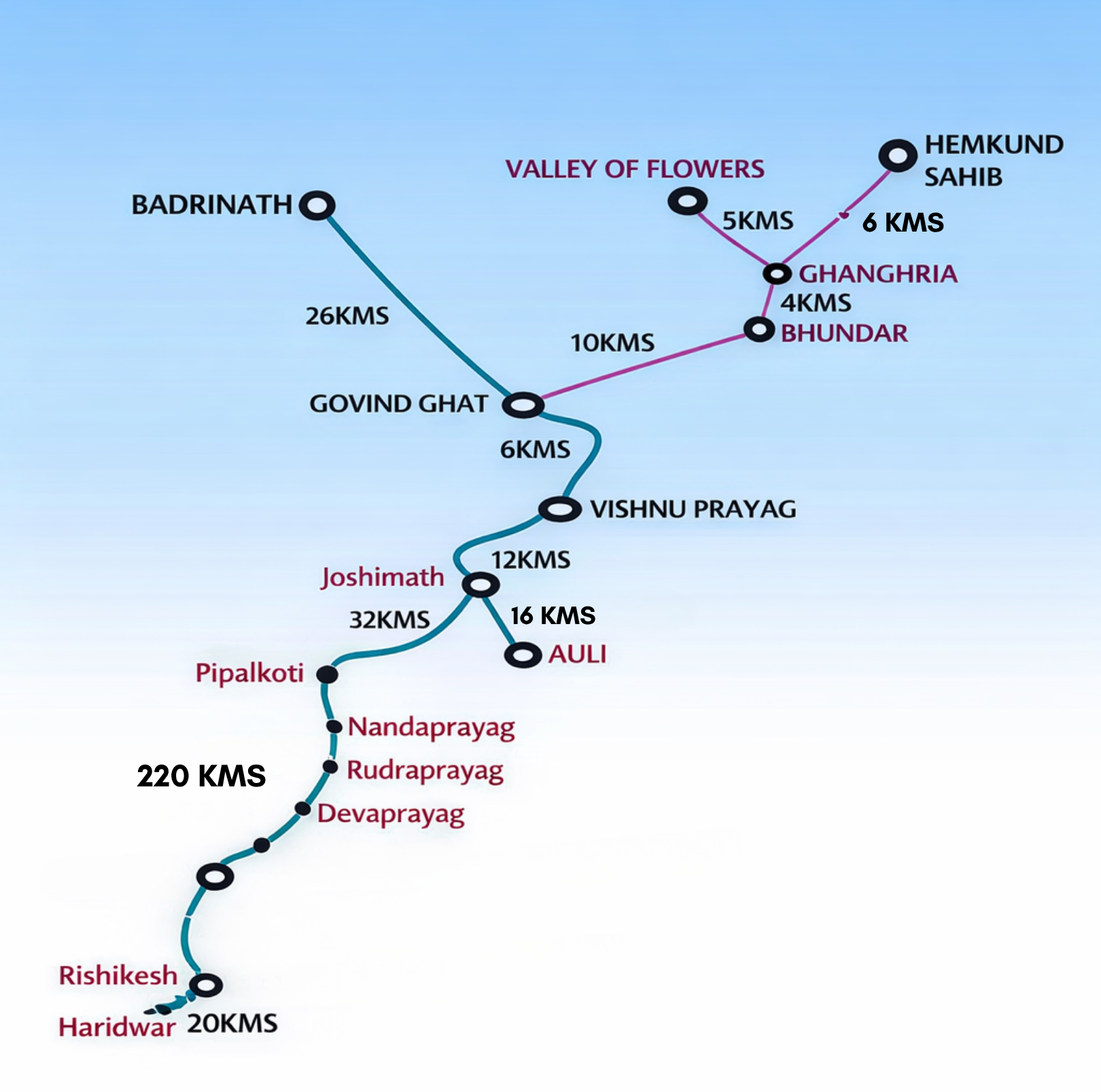 Long drive from Badrinath back to Haridwar — approximately 10–12 hours.