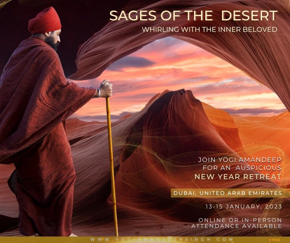 This New Year, join Yogi Amandeep online or in-person in Dubai, UAE for a 3 day event where we will dive into sacred and secret kundalini kriyas along with one of the most powerful yogic tools given birth by the sages of the desert to release, let go and to perfume the pathless path of the heart.